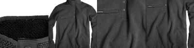- Two large external patch pockets, with concealed snap secured flaps with hand warmers