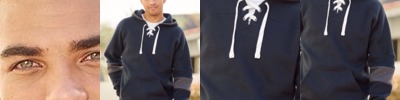 - Jersey lined hood with contrast trim around opening