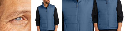 With wider baffles for a modern look, this water-resistant puffer looks cool while keeping you warm. 100% polyester shell and lining Molded center front zipper Interior storm flap Zippered hand pockets Insulation method: 4.4-oz. polyfill Water protection method: water-repellent finish Port Pocket for decoration access