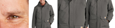 Carhartt heritage meets technical outdoor performance in this rugged coat that's 35% lighter and has two times the abrasion resistance of traditional duck. 8.1-ounce, 97/3 nylon/elastane Quilt-lined insulation with 100-grams of 100% polyester 3M Thinsulate Rain Defender ® durable water repellent Wind Fighter ® technology tames wind Rugged Flex ® technology for ease of movement Attached adjustable hood with chin guard and locking drawcord closure Two-way center front zipper Interior pockets with hook and loop closures Two lower front pockets with side-entry hand warmers Rib knit storm cuffs Drop tail hem for added coverage Carhartt-strong, triple-stitched main seams Carhartt label sewn on left pocket Carhartt Warmth Rating Earned: Level 4â¿¿Extreme Warmth Relaxed fit