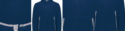 - Front zippered pockets with spandex binding detail