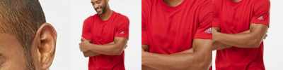 100% polyester heathered wicking knit * Wicks Moisture * Tag-free label * Set-in sleeves