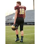 9 ounce 60% cotton/40% polyester athletic fleece * Woven label * Rib-knit waistband and bottom cuffs * 1/2" cotton braided drawcord on outside waistband (inside drawcord on sizes XS-S) * Side seam pockets * Back patch pocket * Tapered leg