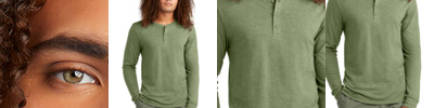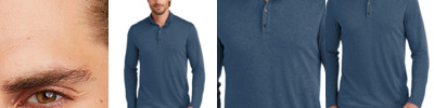 Three yarns form a perfect easygoing look in this henley version of our popular long sleeve tee. 4.5-ounce (153 GSM) 50/25/25 polyester/combed ring spun cotton/rayon, 32 singles 1x1 rib knit neck and cuffs 3-button placket Center front taping Tear-away label