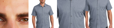 Extend your casual wardrobe with this OGIO knit shirt that has mechanical stretch. The heathered fabric has a subtle pinstripe effect that's evident in the inside collar, locker loop and at the side seam gussets. 4-ounce, 65/35 poly/cotton knit OGIO heat transfer label for tag-free comfort Open collar Sandwiched tonal buttons Left chest pocket with woven OGIO tab Back locker loop Cuffed sleeves Slightly curved hem Shirttail hem can be worn untucked