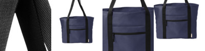 100% recycled 600D polyester This product's carbon footprint has been measured and reduced through a combination of preferred materials and investing in carbon offset projects through the ClimeCo Certified Product Program Front zippered pocket Web handles Exterior woven label that says 100% RECYCLED FABRIC Dimensions: 13'h x 14'w x 5.5'd; Approx. 1,001 cubic inches Note: Bags not intended for use by children 12 and under.