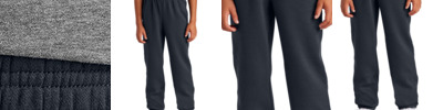 An ideal canvas for decorators, these soft sweatpants are everything and more at an unbeatable value. 8.3-ounce (280 GSM) 65/35 ring spun cotton/polyester, 3-end fleece 60/40 ring spun cotton/polyester, 3-end fleece (Heathered Charcoal) 100% ring spun cotton face (Solids, Light Heather Grey) Dyed-to-match jersey-lined pockets Self-fabric waistband and cuffs with elastic Side seamed Tear-away label
