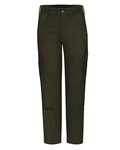 * 11 ounce per linear yard, 100% polyester stretch double knit with stain release * Ladies' fit * Woven label * Branded silicone knitted elastic waistband with tunnel belt loops * Two-snap closure * Zipper fly * Two set-in double welt back pockets with button closure * Reinforced knees * Elastic cuffs