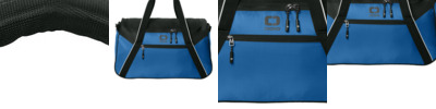 200D poly wave dobby PVC 200D recycled RPET poly mini grid dobby PU Padded wrap handle Interior left and right mesh storage pockets Contrast tipped webbing Zippered front pocket Removable, adjustable padded shoulder strap with black reflective OGIO heat transfer Luggage trolley pass through on back Padded foam bottom for strength Black reflective O icon heat transfer on front Dimensions: 12'h x 21'w x 12'd Capacity: 2,685 cu. in./44 L Weight: 1.43 lbs./0.7 kg Note: Bags not intended for use by children 12 and under.