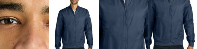 Keep your look clean and classic with this bomber that works just about anywhere. Details include a rib knit collar and cuffs, dyed-to-match zipper and snap-front pockets. The contrast embroidered Swoosh logo is on the left sleeve and woven label at the back. Made of 5-ounce, 62/38 cotton/nylon.