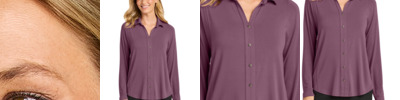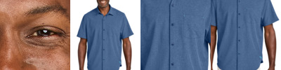Redefine your wardrobe with this stretch woven style that combines dress shirt sophistication with the performance of a tech piece. Polished, lightweight and destined to be worn untucked, it is versatile, professional and always fashionable. Fabric+Weight 3.5-ounce, 52/36/12 polyester/recycled polyester/spandex Features+Benefits UPF rating of 30+ Moisture-wicking Stretch Easy care Open collar with removable collar stays Pearlized buttons Left chest chevron pocket Back yoke with box pleat