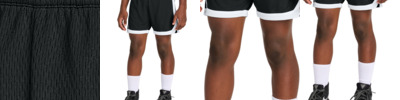 A short with moisture-wicking and odor-resistant technology is a slam dunk for your team. 4.7-ounce, 100% polyester closed-hole mesh with PosiCharge technology Moisture-wicking Odor-fighting Elastic waistband 5-inch inseam No drawcord Contrast side and hem stripe Side vents Tear-away label