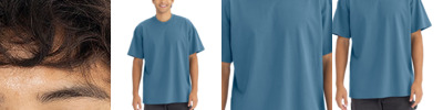Retail fit Crewneck Side seamed Tear-away label 4.2-ounce, 100% Airlume combed and ring spun cotton, 32 singles Heathers and Solid Black Blend: 52/48 Airlume combed and ring spun cotton/polyester Athletic Heather: 90/10 Airlume combed and ring spun cotton/polyester