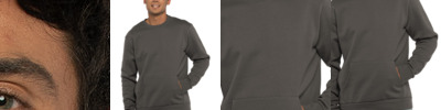 7.4-ounce, 80/20 combed ring spun cotton/polyester fleece 100% cotton face Tear-away label Halfmoon at back neck 1x1 rib knit cuffs and hem Side seamed Front pouch pocket