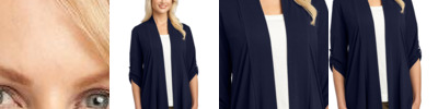 A stylish feminine fit and flatlock stitching details make this sweatshirt stand out. A rib knit cadet collar and 1/4-zip add to its appeal. Colorfast with minimal shrinkage, this casual essential is made to last.