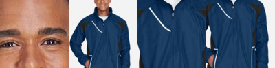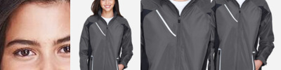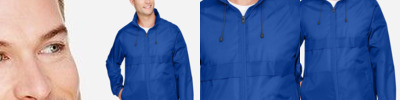 2.8 oz./yd² (US), 4.7 oz./L yd (CA), abrasion-resistant 100% nylon taslan shell with polyurethane coating for enhanced wind- and water-resistance 3 oz./yd² (US), 5 oz./L yd (CA), 100% polyester dyed-to-match tricot big hole mesh lining in body 1.7 oz./yd² (US), 2.8 oz./L yd (CA), 100% polyester taffeta lining in sleeves Roll-away three-piece hood with rain bill Black taping adds contrast to back and sleeves EZEM zipper in back lining for easy decoration access Center front/lower pockets with molded plastic zipper with garage