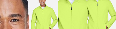 7.4 oz. 88/12 REPREVE polyester/spandex Breathable Butter soft Zipper garage on placket Easy care, versatile, designed for comfort