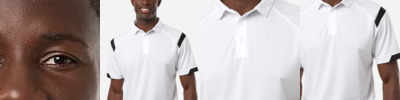 - Contrasting color inserts on shoulder and sleeve cuff