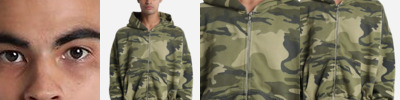 - Three-piece hood with jersey lining