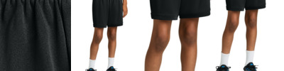 A great fit for a variety of sports and activities, this carbon-reducing youth short features interior drawcords and it fights moisture and odors. 4.4-ounce, 100% recycled polyester interlock with PosiCharge ® technology body 4.1-ounce, 100% recycled polyester ultra-fine flat back mesh with PosiCharge technology panels This product's carbon footprint has been measured and reduced through a combination of preferred materials and investing in carbon offset projects through the ClimeCo Certified Product ™ Program Moisture-wicking Odor-fighting 5-inch inseam Elastic waistband Interior open-ended drawcords Mesh panels on top back Mesh color blocked panels at hem Notch vent at bottom side hem Tear-away label