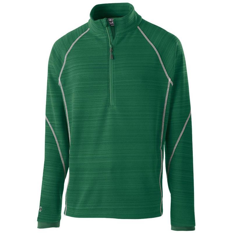 Dry-Excel™ bonded polyester is a scuba bonded fabric featuring a tonal striation with DWR finish for weather-resistance Storm Dfend™ Technology features durable water-resistant finish keeps you dry while knit softshell breathes to keep you comfortable * Poly/spandex storm cuffs for added weather protection and comfort * Woven label * Half-zip pullover style with reflective zipper pull and matte tips * Dry-Excel™ bonded poly zipper garage and storm flap * Contrast color stitching * Raglan sleeves for maximum mobility * Front zippered pockets * Open bottom
