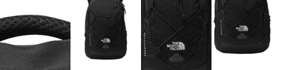 210D Cordura ® nylon mini-ripstop 1680D ballistic nylon trim FlexVent suspension system Padded, fleece-lined tablet sleeve Front stash pocket with stretch side panels Fleece-lined media pocket, secure zippered pocket and elastic webbing External fleece-lined pocket Stretch-mesh side pockets Comfortable, padded top haul handle Sternum strap with whistle buckle Removable waist belt Contrast embroidered The North Face logo on front Average weight: 2 lbs. 5 oz. (1049 g) Volume: 1709 inÿ³ (28 liters) Laptop sleeve: 12'h x 12.5'd, fits most 16' laptops Dimensions: 19.75'h x 12.2'w x 6.75'd Note: Bags not intended for use by children 12 and under.