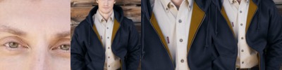 - Three-panel hood with solid lining and dyed-to-match drawcords