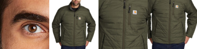 The closest thing to wearing an armadillo, this heavyweight soft shell keeps the elements at bay while keeping you warm and dry. 13.9-ounce, 90/10 nylon/spandex shell bonded to a water-resistant film insert and a 100% polyester fleece backing Rain Defender ® durable water repellent Wind Fighter ® technology tames wind Rugged Flex ® technology for ease of movement Reverse coil center-front zipper with chin guard Zip-through cadet collar Left chest pocket with reverse coil zipper Zippered hand pockets Interior pockets: large document pocket with hook and loop closure and two open pockets Hook and loop adjustable cuffs Adjustable drawcord drop tail hem Carhartt-strong, triple-stitched main seams Carhartt label sewn on chest pocket Relaxed fit