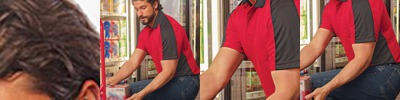 - Contrast-color modified raglan yoke and set-in sleeves
