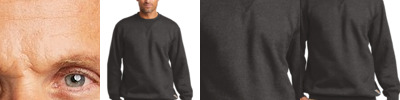 Retail fit Tear-away label Dropped shoulders Side seamed Rib knit cuffs and hem 8-ounce, 52/48 Airlume combed and ring spun cotton/poly fleece, 32 singles Athletic Heather: 8-ounce, 90/10 Airlume combed and ring spun cotton/poly fleece, 32 singles