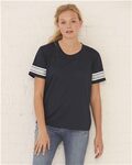 A longer tunic length, a cowl neck and unbelievable softness make this sueded tee perfect for the stands or the streets. 5-ounce, 60/40 sueded ring spun cotton/poly, 24 singles Heat transfer label for tag-free comfort Contrast twill drawcords Embroidered New Era flag logo on left hem 1x1 rib knit cuffs Thumbholes Curved drop tail hem