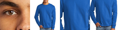5.2-ounce, 100% cotton 99/1 cotton/poly (Ash) 90/10 cotton/poly (Oxford Grey) 60/40 cotton/poly (Charcoal Heather) Taped crew neck Rib knit cuffs Double-needle hem Champion C logo at left cuff Tag-free label