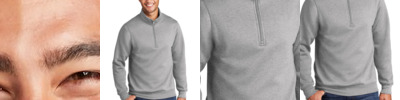 - 7.4 oz., 60/40 cotton/polyester, 30 singles heathered fleece CVC face