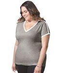 3832 Women's Curvy Retro Ringer Premium Jersey V-Neck Tee