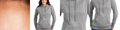- Front pouch pocket with textured loop detail at pocket opening
