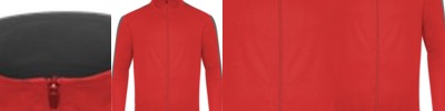- Self-fabric collar with full length locking zipper