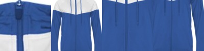 - Self-fabric hood with drawcord and full length locking zipper